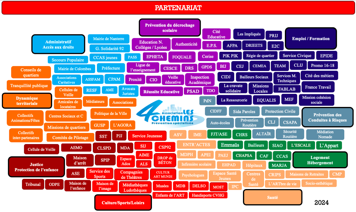 Description : Voici le réseau de partenaires qui accompagne l’Association des 4 Chemins dans ses actions.
